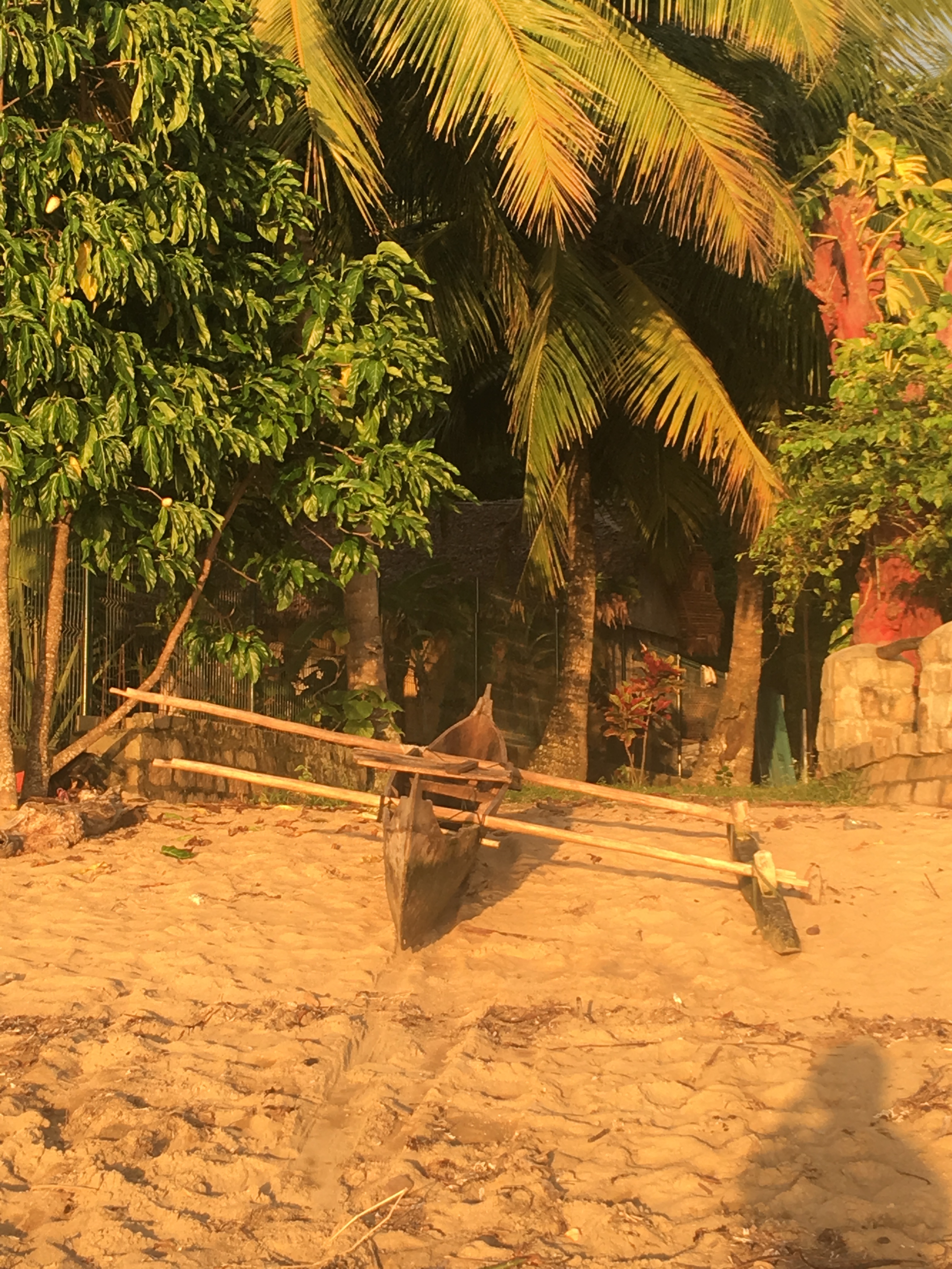 Nous eûmes aussi l’occasion de passer à Madagascar des vacances incroyables avec nos parents et frères et sœur. A Akanin’ny Nofy d’abord près du canal des Pangalannes, où nous vécûmes dans une paillote accessible uniquement en pirogue, « dévalisant » la case du chinois égaré là, mangeant du poisson péché par les gamins de village, puis un cœur de palmier coupé dans la foret, et se baignant en « enfants sauvages » alternativement dans un lac, le canal et la mer avec un peu de crainte pour les crocodiles et les requins.